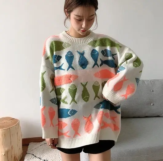 0 Response to "Deals Chance for loose women fish sweaters sweet girls students lazy casual fish pullovers autumn animal sweater"