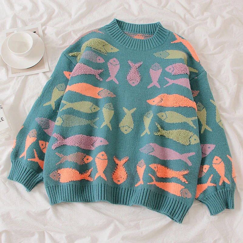 Related Product for loose women fish sweaters sweet girls students lazy casual fish pullovers autumn animal sweater