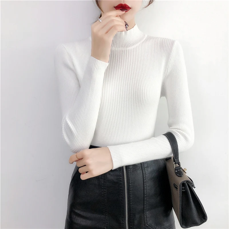 BEFORW 2019 Autumn Women lady sweater Solid Turtleneck sweater women slim sexy tight Bottoming Knitted Casual Pullovers Top
