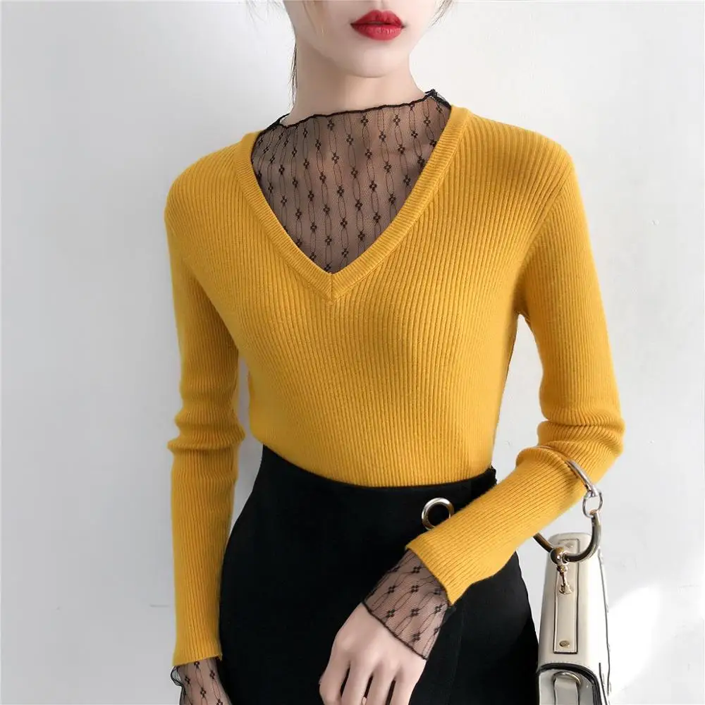 Expensive Elegant Lace Patchwork Turtleneck Women's Sweater Winter Warm Basic Knitted Jumper Female Korean Pullover Long Sleeve Spring TopEarn 17% Cash Back, VALID UNTIL TOMORROW